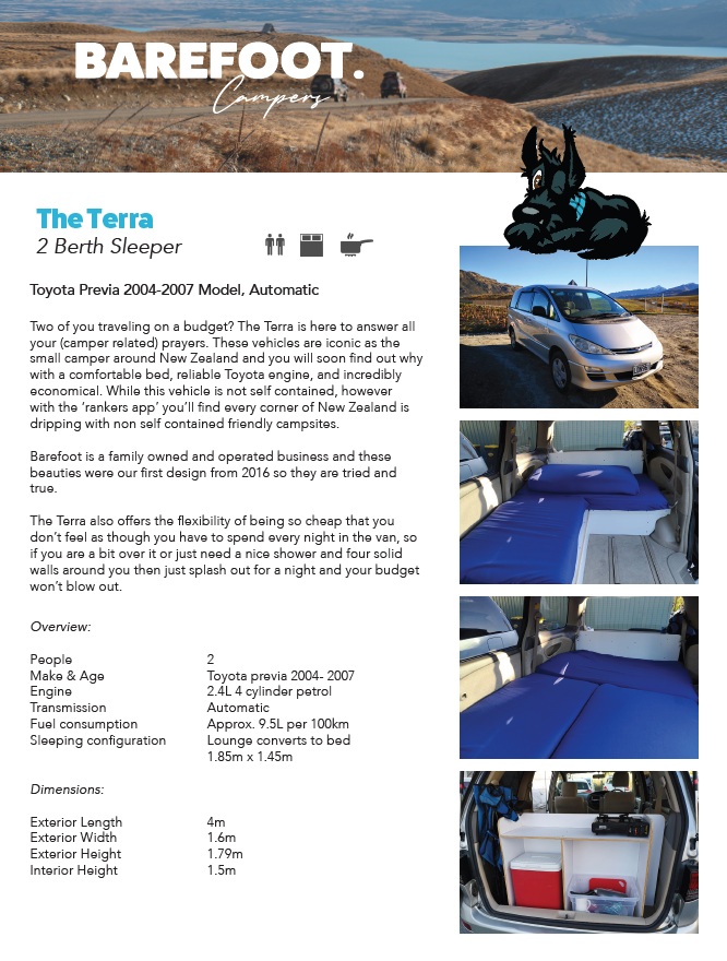 Two of you traveling on a budget? The Terra is here to answer all your (camper related) prayers. These vehicles are iconic as the small camper around New Zealand and you will soon find out why with a comfortable bed, reliable Toyota engine, and incredibly economical. While this vehicle is not self contained, however with the ‘rankers app’ you’ll find every corner of New Zealand is dripping with non self contained friendly campsites.
