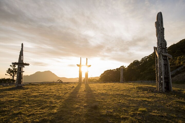 Watch the world awaken surrounded by nine larger than life carved pou (pillars) that stand as sacred cultural treasures of the local Ngati Porou people.