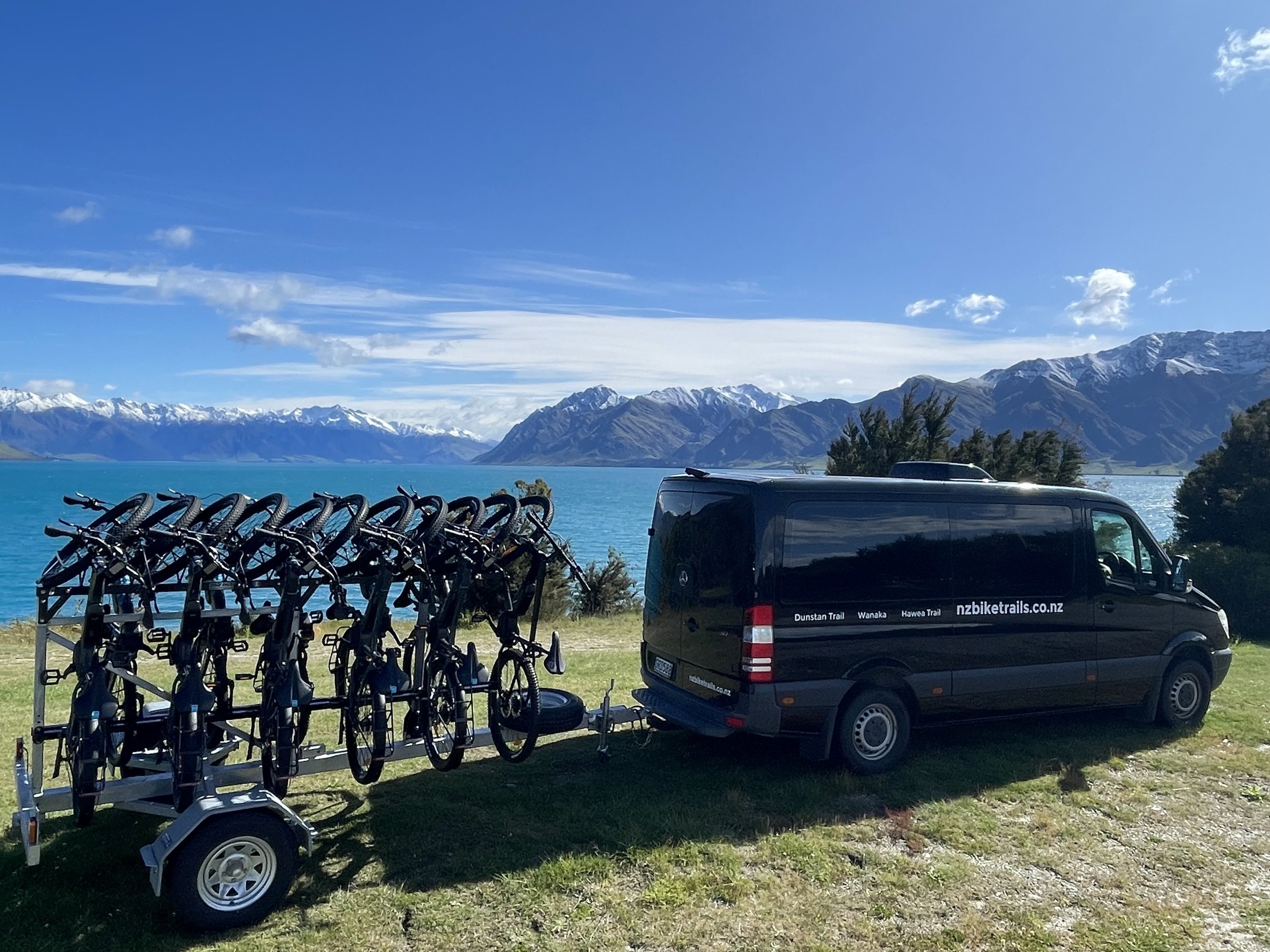 Shuttles from Wānaka out to Hāwea, and then you ride back to Wānaka along the river Trails
