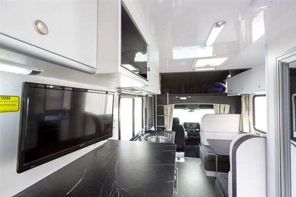 The Euro Star features a unique bed lift system, offering superior comfort and convenience for the discerning traveller. Forget dinette conversion, with a spacious double bed available at the push of a button. The vehicle's lavishly appointed interior includes deluxe kitchen facilities, electric flush toilet, quality upholstery and flat screen TV and DVD player. The ultimate self drive experience has arrived in the spectacular Euro Star.
