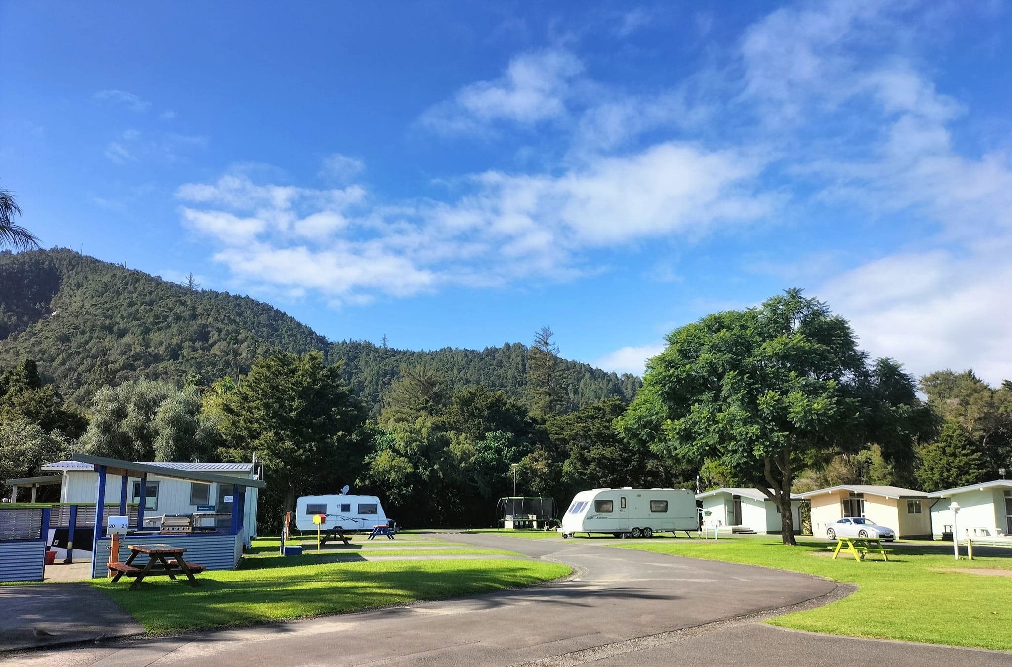 Bring your motor home, caravan, or tent and set up on one of our spacious sites, each of which has the bush-clad hills of adjacent Parihaka Scenic Reserve as a backdrop. You have a choice of grass, or all-weather sites.