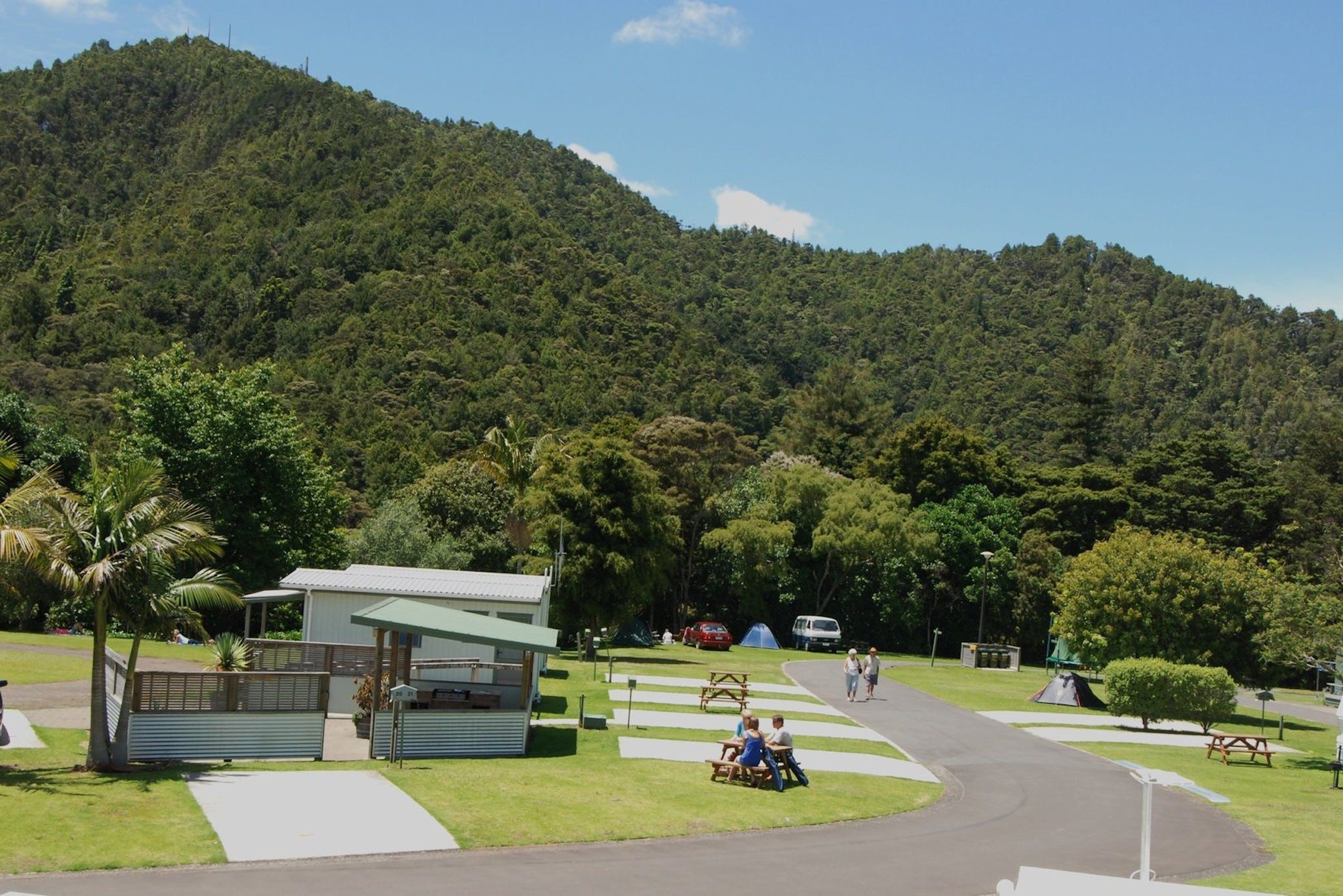 Bring your motor home, caravan, or tent and set up on one of the spacious sites, each of which has the bush-clad hills of adjacent Parihaka Scenic Reserve as a backdrop. You have a choice of grass, or all-weather sites.