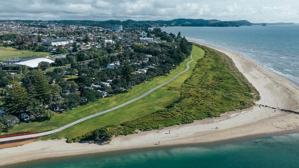 We stayed here for our first night in the motorhome after picking it up at the airport. Not too far out of town so made a useful first stop to get acquainted with the RV. Very helpful lady on the counter explained benefits of Top 10 membership. Top 10 were not the cheapest, but we found a high standard of facilities so membership discount helped. Lots of permanent vans in this park so expect it will be busy in NZ holiday times but was just great when we visited in September. Nothing between the sites and the sandy beach but a bike path and a narrow strip of grass and low bush.