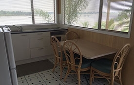 This motel unit contains a double bed and a single bed. It has a deck that has an awesome view that overlooks the harbour at the back of the unit.