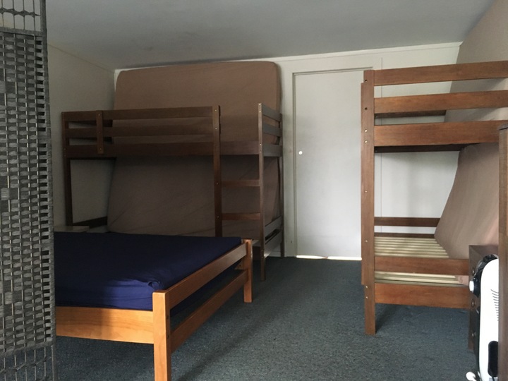 There is also a fold out couch, toaster, jug, some plates, a fridge/freezer and a TV. There is also another room next door also with double bed, bunk above, and single beds. Both can be booked for larger groups with internal access available between the rooms. Note - short walk to toilet and shower block as no bathroom facilities in this cabin.