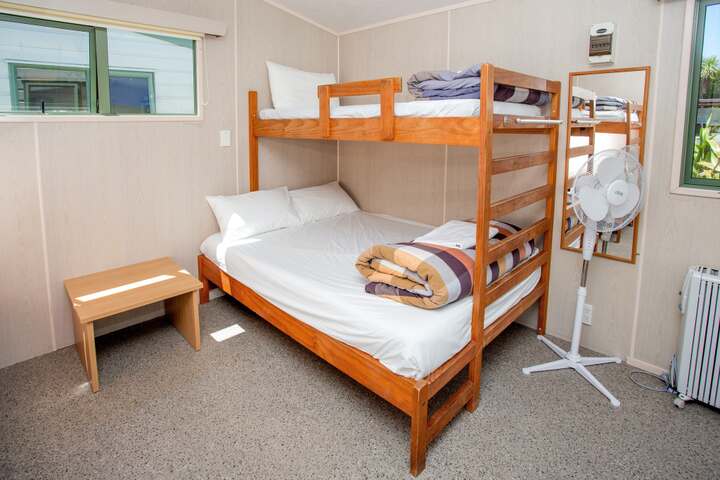 This open plan living space has two sets of bunks, one set with a double on the bottom. Apart from towels, all is provided for you to relax and enjoy your stay in these cosy rooms.
