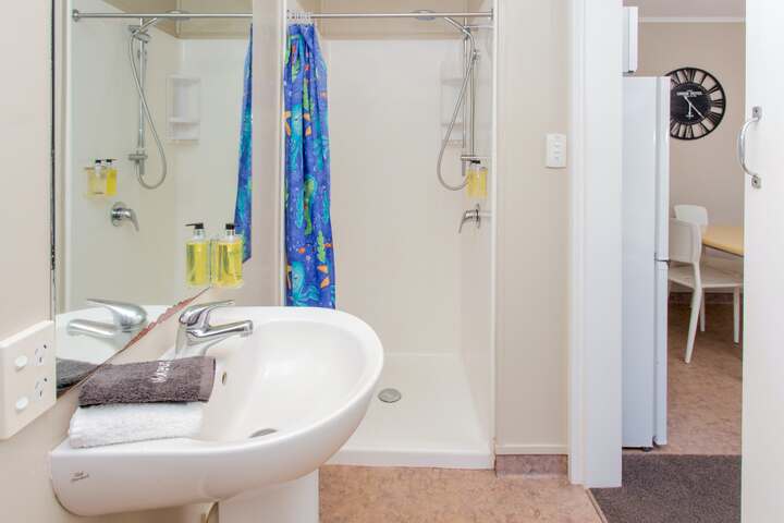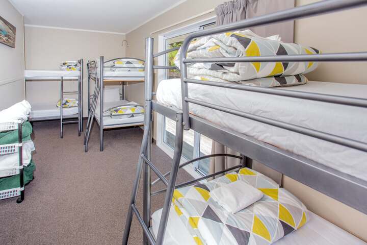 With one large separate bedroom with 3 sets of bunks, you are able to put the kids to bed and enjoy the rest of the evening. A large comfortable super king bed shares the living space, with a TV, kitchen and dinning area, With the added luxury of its own shower and toilet, heat pump/air conditioning unit. All linen, towels and pool towels are provided.
