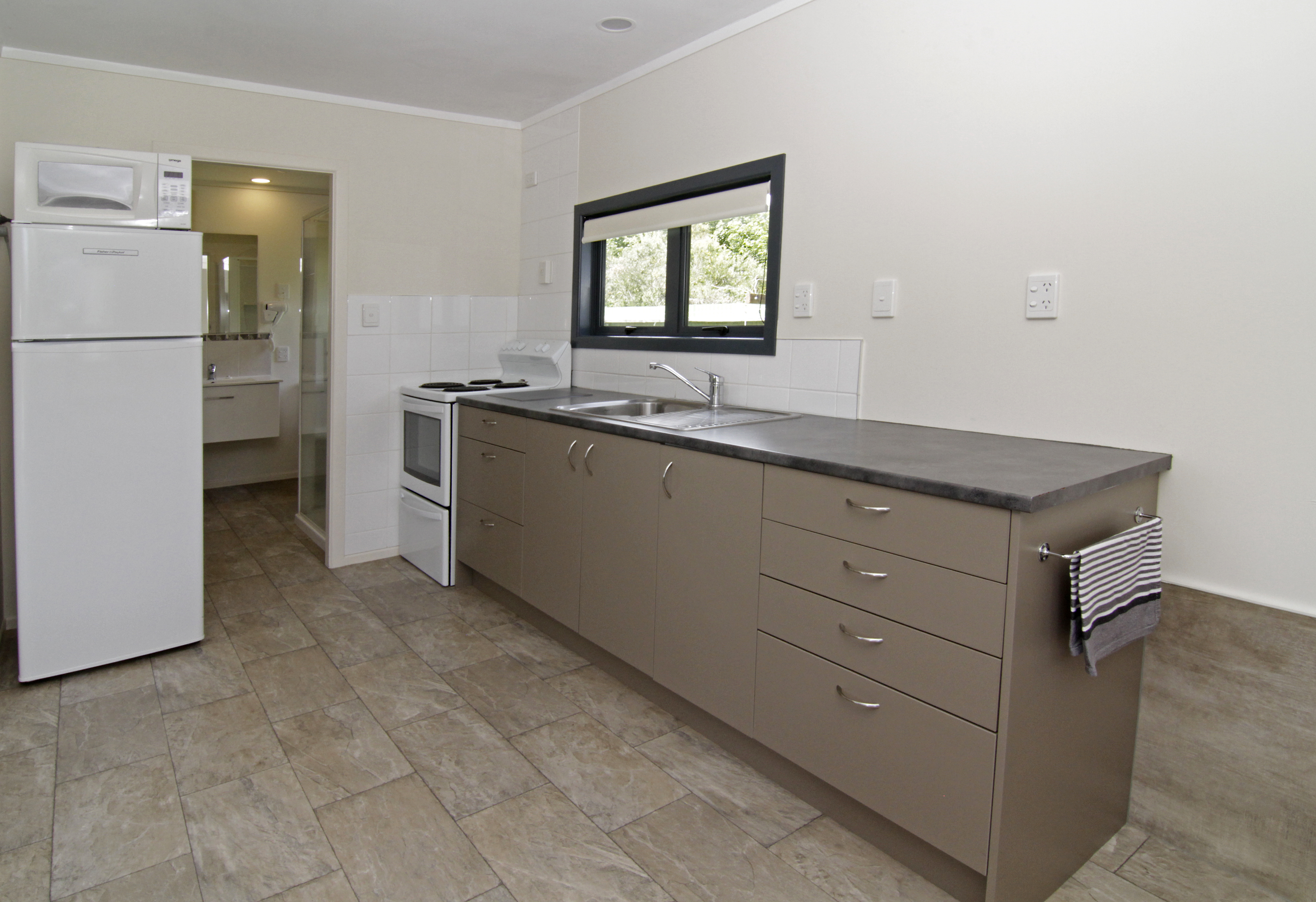 Spacious family unit with queen size bed, with electric blanket, in an alcove off the lounge/dining area. There are two sets of bunks in a separate room. Full kitchen facilities including oven. Heater provided. All bedding, bath mat, hand towel, tea towel and dishcloth supplied. Towels are not provided but may be hired from reception for $2.50 each. This is the perfect family self contained unit accommodation, located within walking distance to Lake Rotorua.