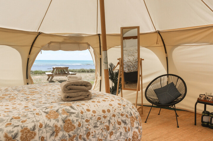 Slow down and sink in to the beauty of nature in our cosy Lotus Belle tent. Resting right on the water’s edge, you’ll have front row seats to the first sunrise on earth.