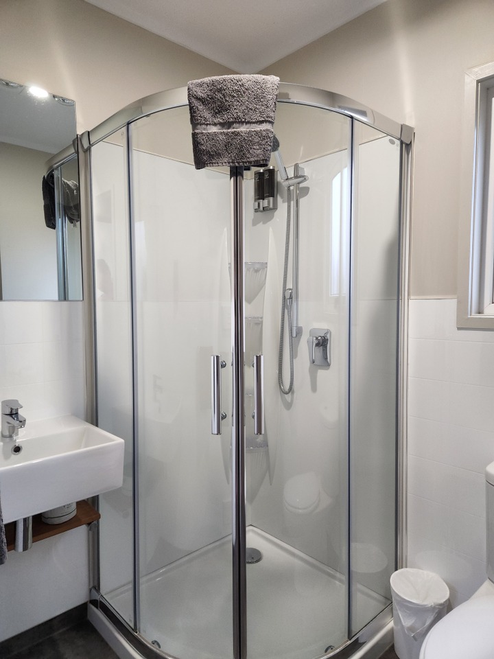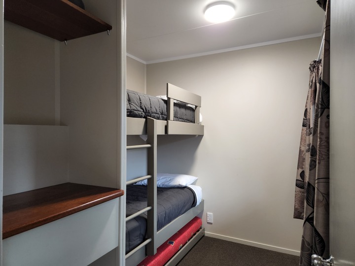 Rooms in our self contained units are configured with a queen sized bed in one bedroom, and a set of single bunks and a roll-away in the second bedroom.