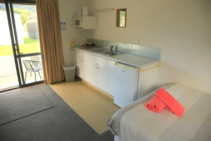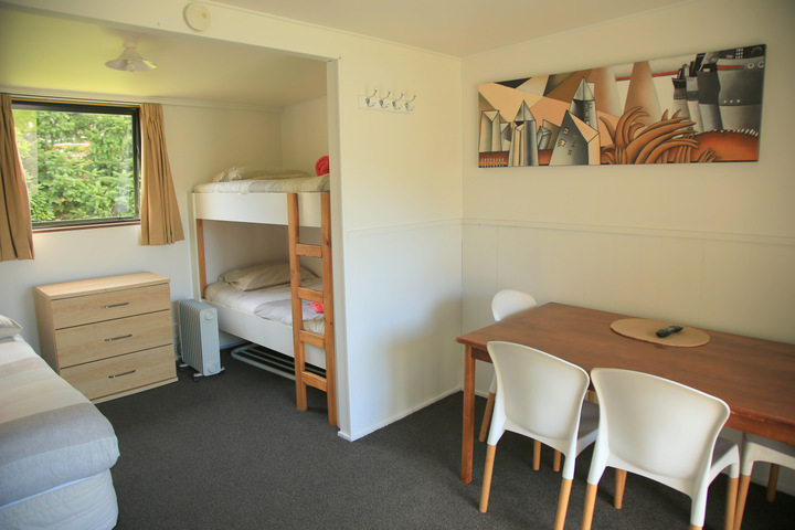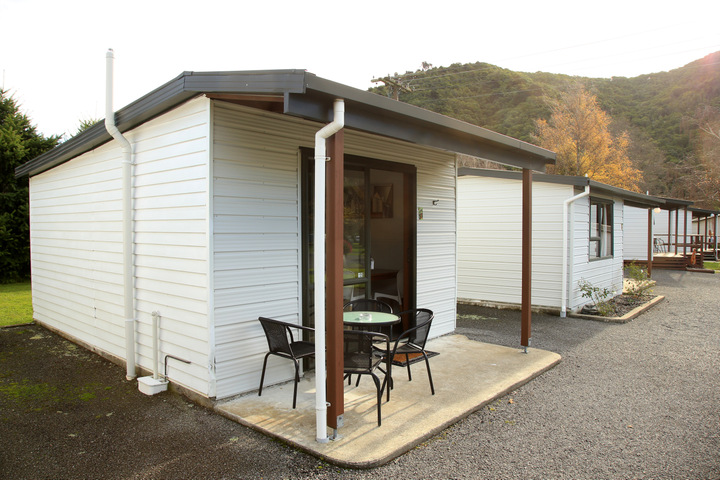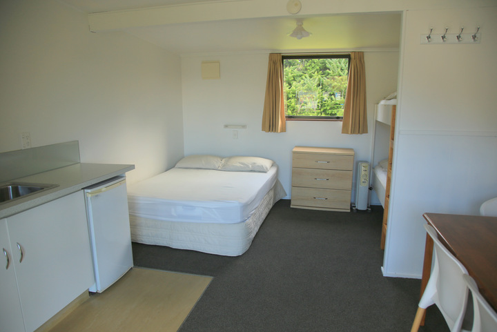 Kitchen Cabins have a kitchen and TV, table, chairs and drawers and share the communal toilet and shower facilities. Bed linen additional.