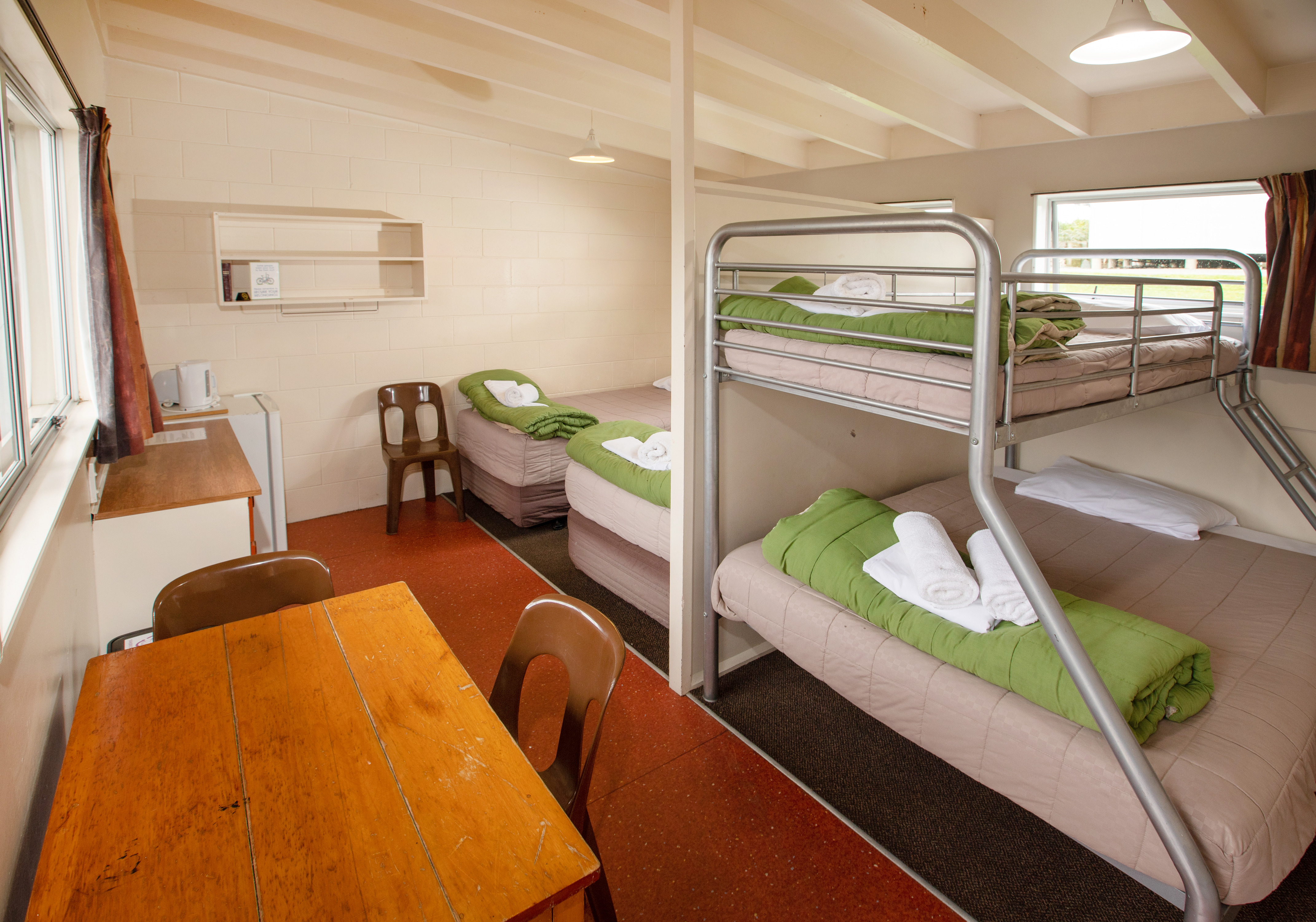 The name says it all: our Basic Cabins provide clean, no-frills roofed accommodation with various bed configurations for families or friends, close to a shared kitchen, laundry and bathroom. Kitchen equipment packs are available for hire.