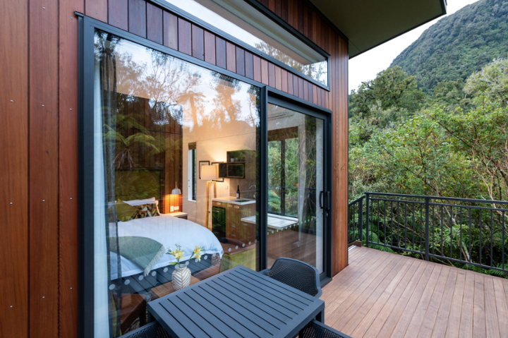Charming and stylish studio Deluxe Tree Huts, privately nestled amongst lush rainforest. Featuring a king bed with pristine linen and plush pillows for absolute luxury, a large en-suite bathroom with rain shower and underfloor heating, tea/coffee and breakfast making facilities, a Nespresso machine, and all the modern comforts.