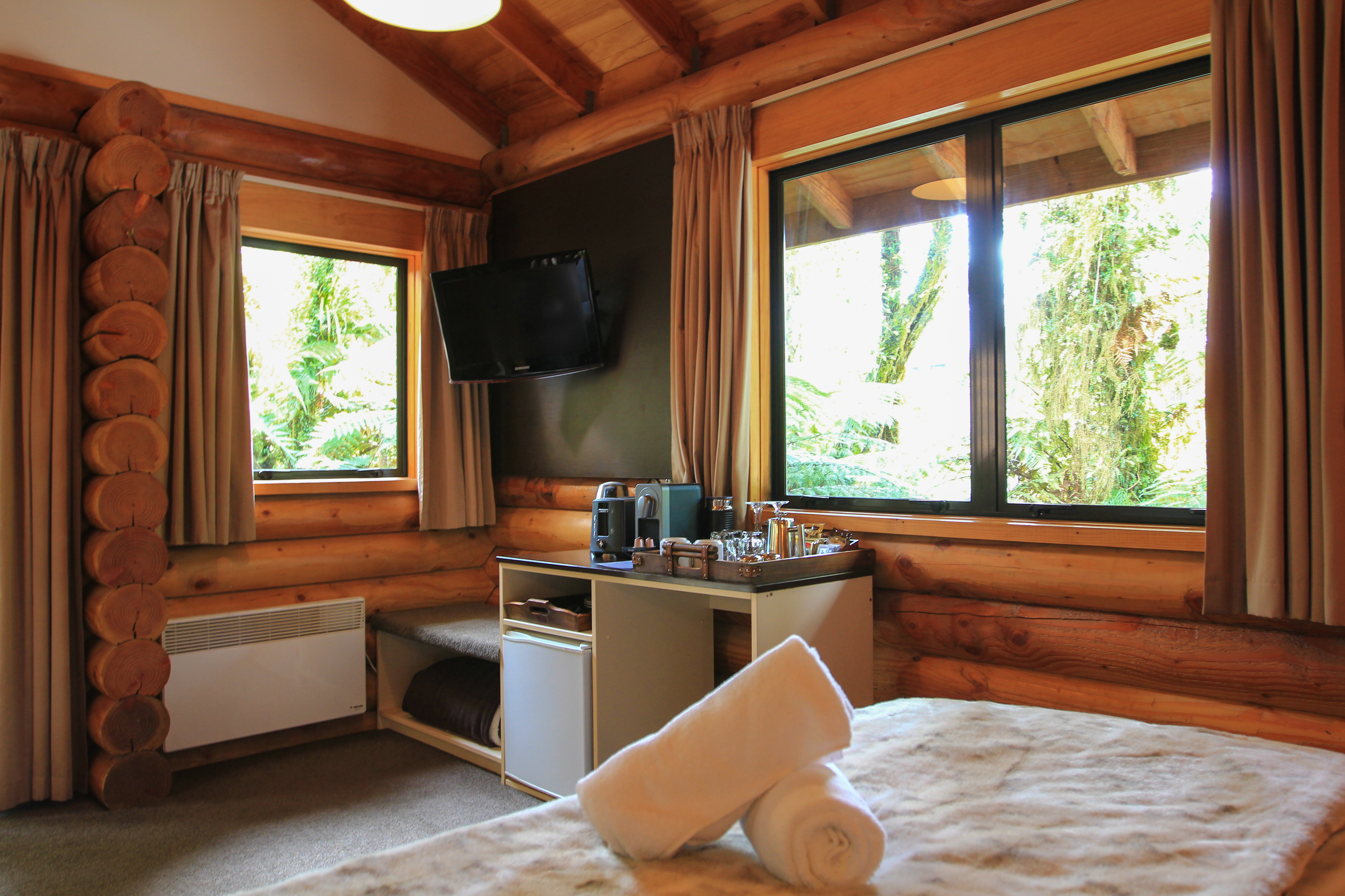 Our Tree Huts are standalone log cabins raised up amongst the lush rainforest canopy with large private decks.