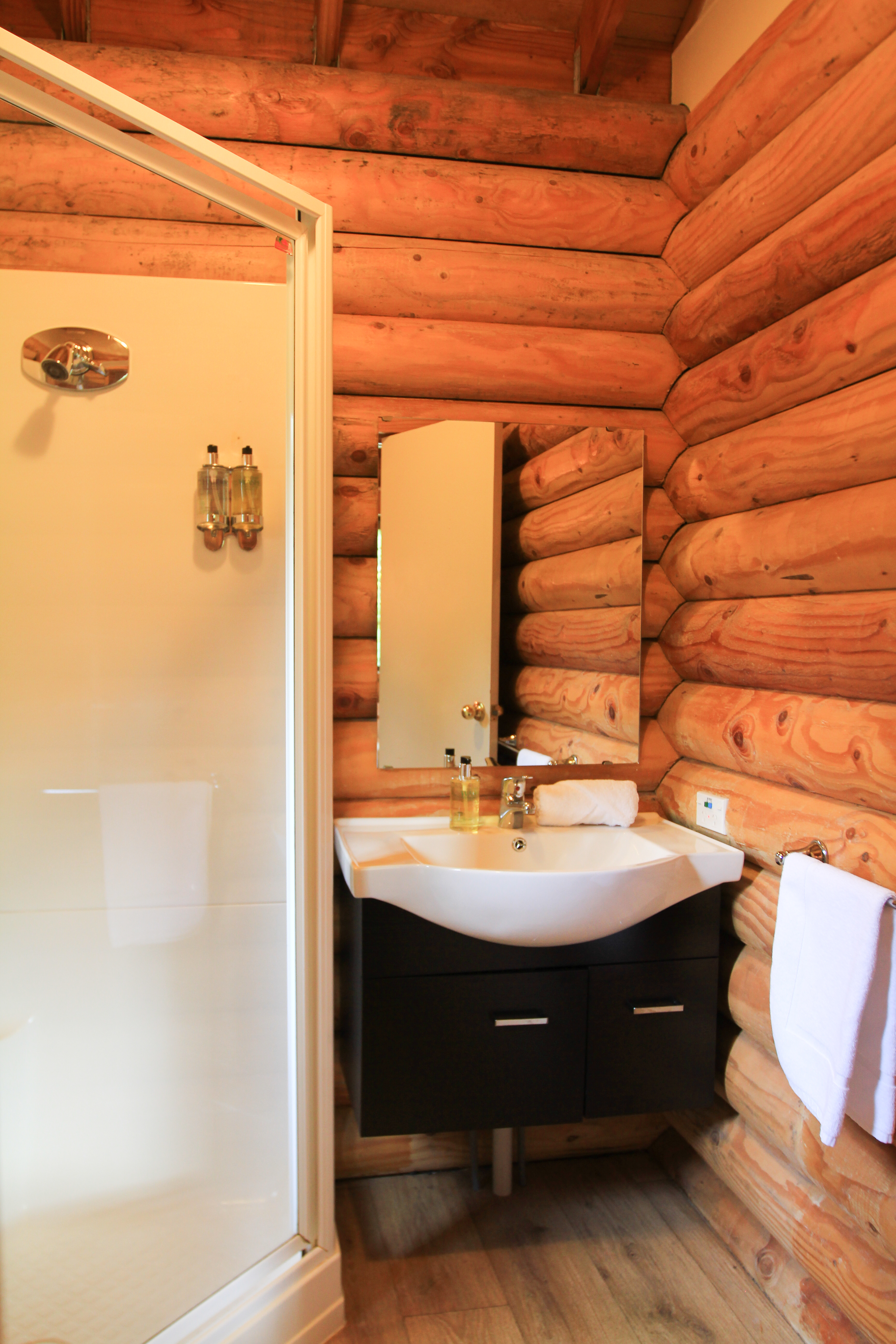 Log cabins amongst the rainforest canopy