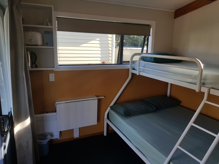 Double bed with a single bunk above, 1 set of single bunks, jug, toaster and heater. Use communal kitchen and bathroom. Supply own bedding, linen & towels or hire.