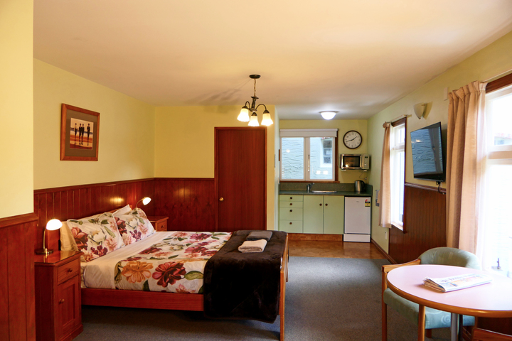 Our cosy Studio Motels have one queen bed, and feature tea/coffee making facilities, toaster, fridge, microwave and its own bathroom. These units can either be upstairs or ground level so you can have the option to either sit outside on balcony or courtyard to enjoy the fresh New Zealand air!