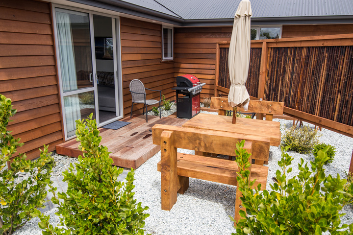 With the capacity to sleep 8 people it is perfect for large families or groups. Each room has its own outdoor area with a BBQ and outdoor seating. Guests have easy access to on site laundry and children's facilities including games room and jumping pillow.