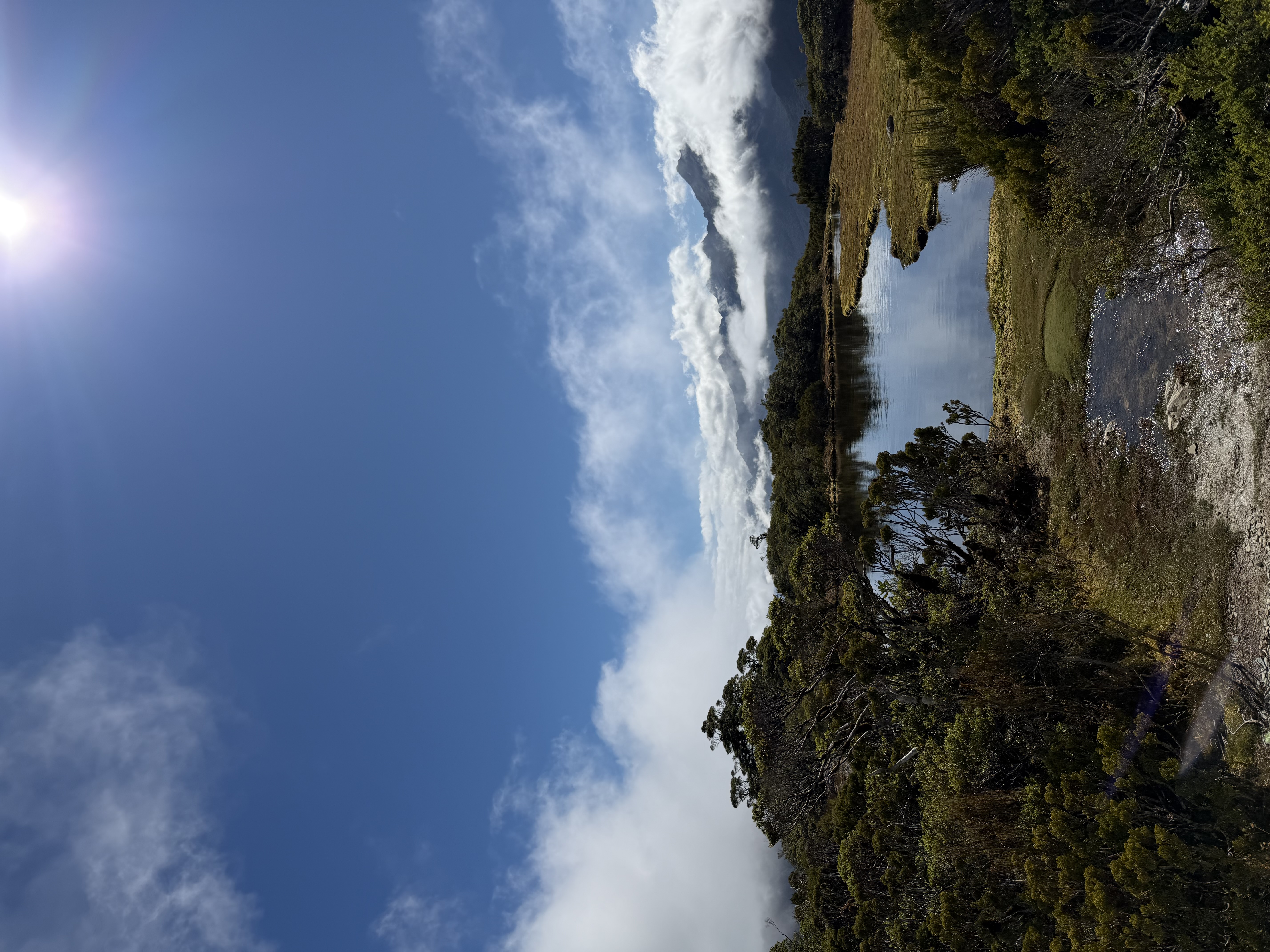 This is a different world of stunted silver beech, alpine bogs and tarns. You are spoiled for choice which way to look. The interpretation plaque helps identify the main mountains and valleys on the 360 degree panorama.
