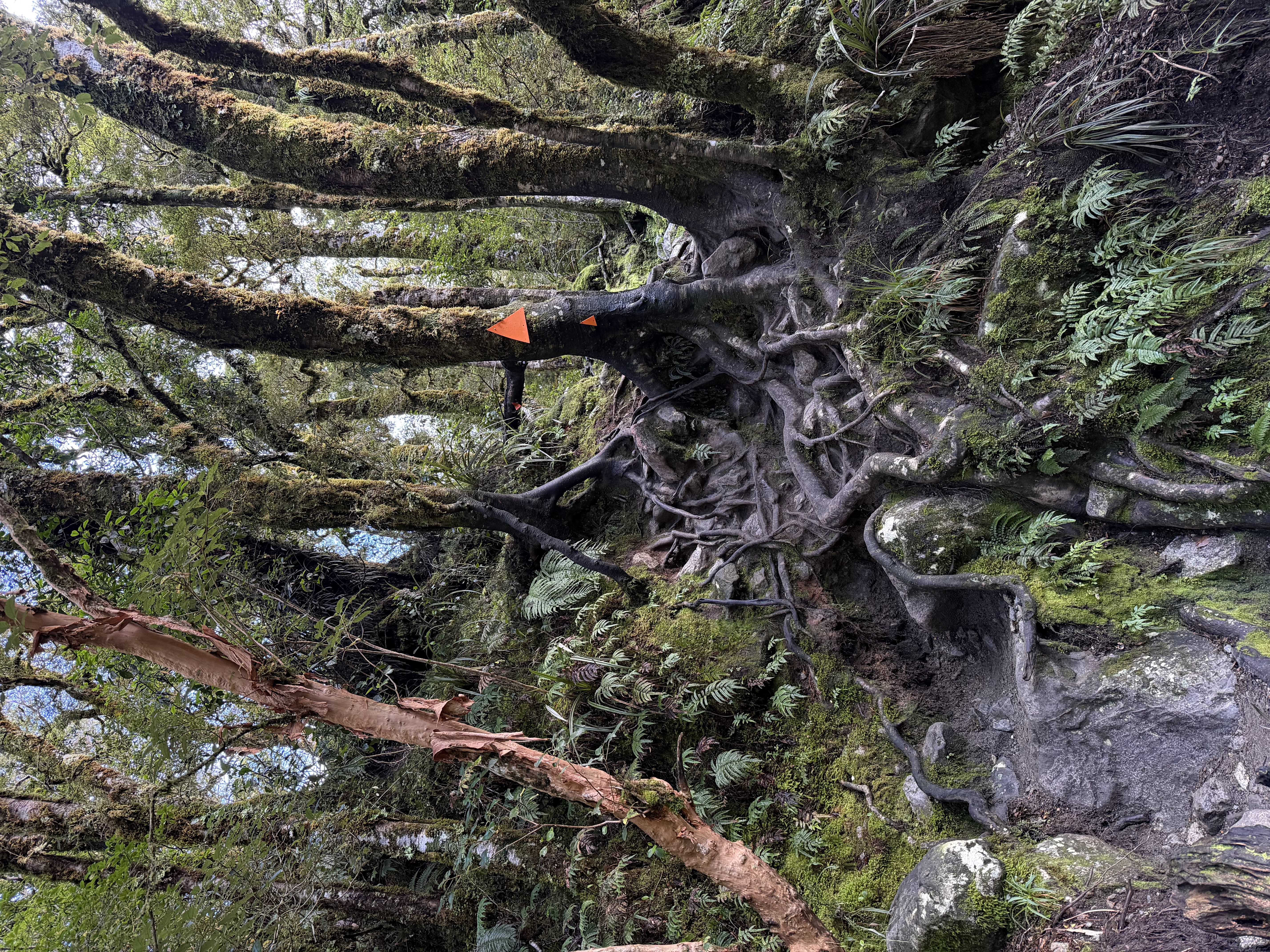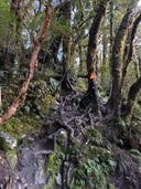 The rest of the track is much more gnarled, with rocks, roots and occasional muddy patches. Around 20 minutes before the lake you cross a rock slide that weaves the track to the northern side of the gorge. It is one of those tracks when you think you are nearly there, but the brow of the hill keeps retreating. Eventually, you sense a change in vegetation- ferns to moss and a more stunted tree growth.