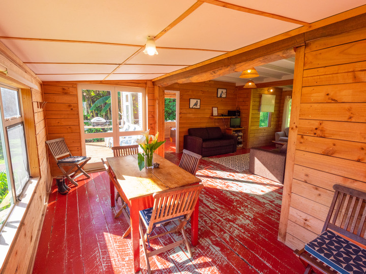 The Beach Cabin, nestled below the subtropical forest, has a view of the sea with only a minutes walk to the beach.