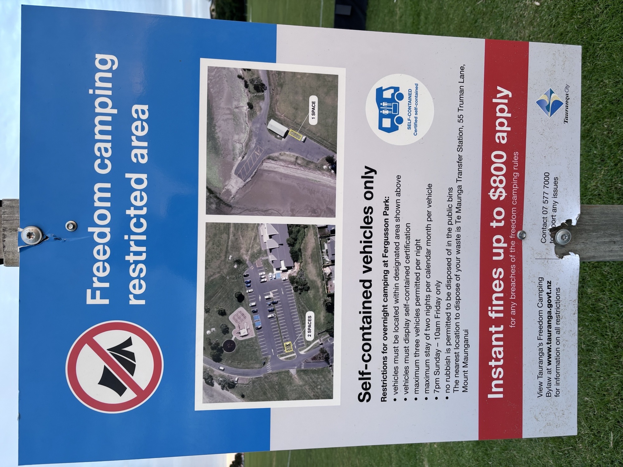 zoomCertified self-contained campervans can stay between Sunday and Thursday for up to 2 nights per calendar month in the internal carpark of Fergusson Park, beside the playground. Nab your spot early - only 3 vehicles per night, so it's first-come first-served.