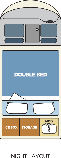 The Chubby Camper is ideal for two people with lots of internal space to eat & sleep as well as a built-in kitchenette with lots of space to cook, LED internal lights, and 2 USB chargers. PLUS for an extra $50/hire (fee to hire portable toilet ) you can opt for the self-contained option and freedom camp your way across New Zealand.